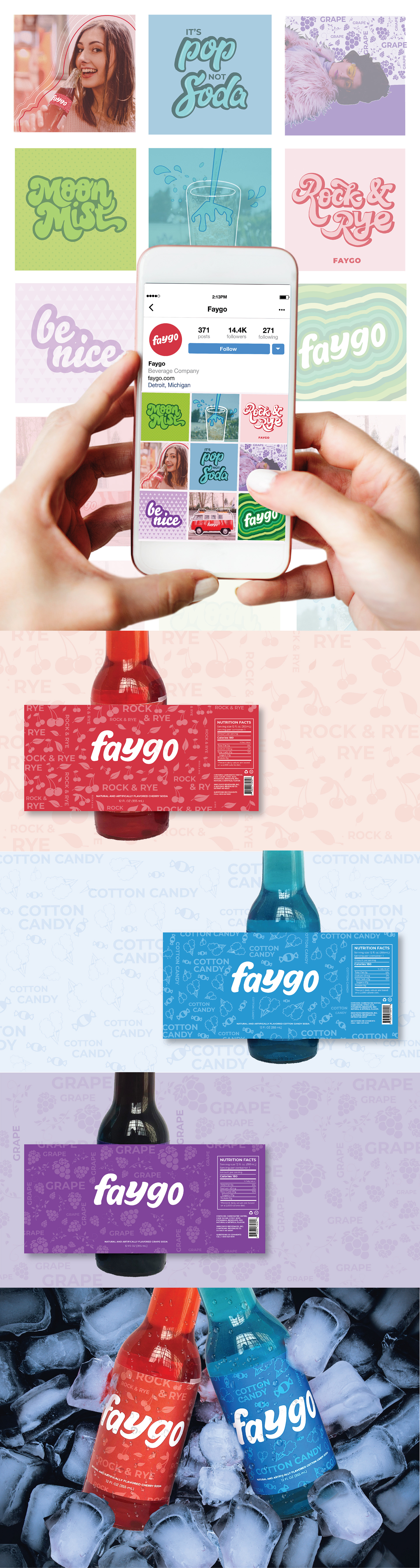 College class project to redesign an existing brand. I chose to take a modern approach to Faygo, a midwest soda company.